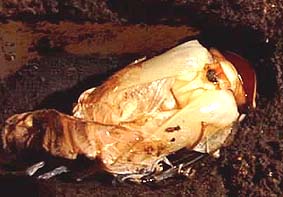 あまりにももがきまくって蛹室から出てしまうので、反対側を向かせた。