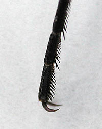 アゲハチョウとセセリチョウの仲間は前脚の脛節に葉状片(ようじょうへん)という突起がついています。この葉状片は触角を掃除する時に利用されるものと思われています。