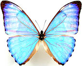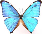 輝きの強いモルフォチョウの一種。よく装飾品に利用されます。