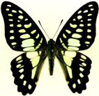 【ミカドアゲハ】 アオスジアゲハによく似ていますが、青い紋の模様が違います。